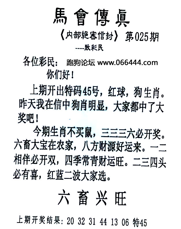 025期:必中六肖 |